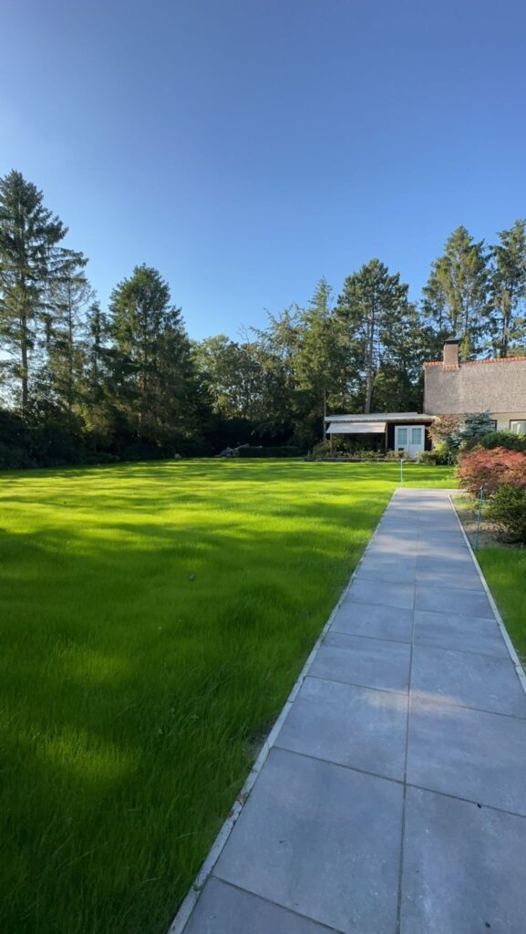Aanleg van een strak en duurzaam gazon bij een particuliere tuin in Roosendaal.